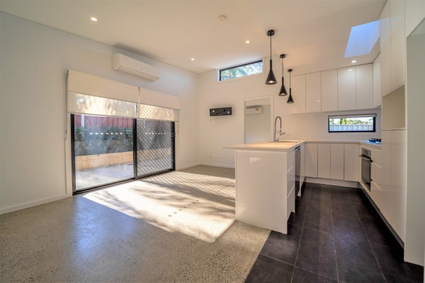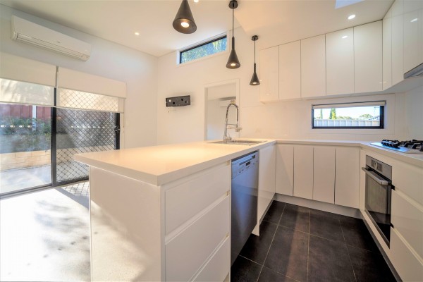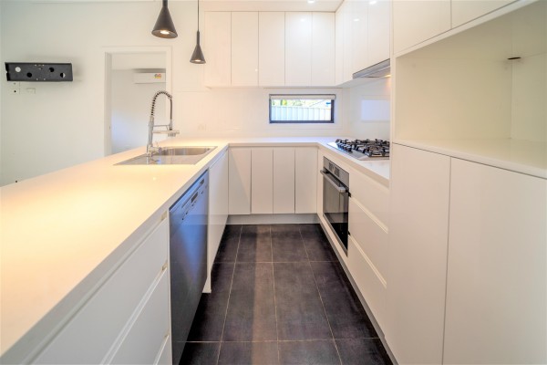 * Modern kitchen with high end lighting, Caesarstone benchtop,