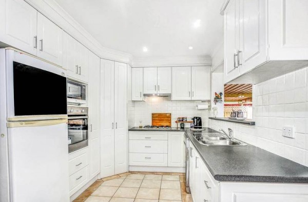 * Family room off the kitchen with tiled flooring, downlights & a skylight