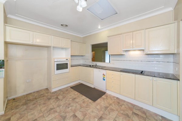 + Updated kitchen with laminate benches, dishwasher and electric cook-top