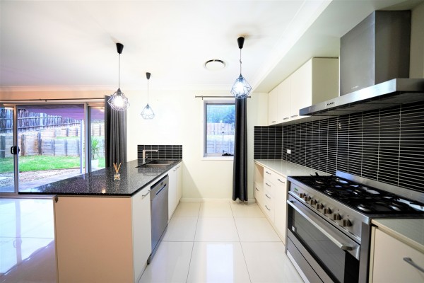 * Modern kitchen with stainless steel appliances, gas cooking & a