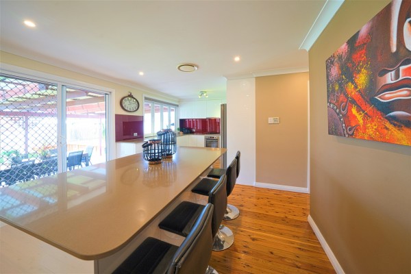 onto a separate island benchtop which is also a eat in breakfast bar