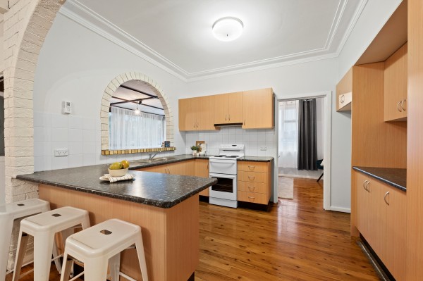 + Neat kitchen with electric cook-top and laminate benches upstairs