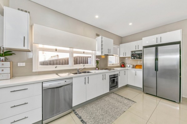 *Modern Kitchen with stainless steel appliances and ample bench space