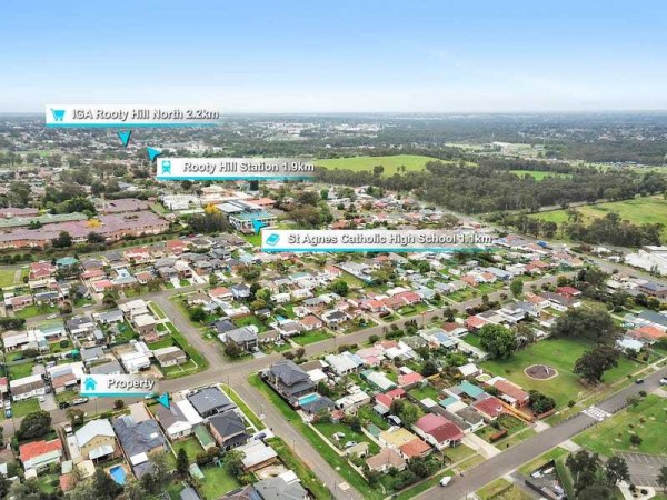 * A long list of local amenities including Eastern Creek Quarters, Eastern Creek Public School, St Agnes Catholic High, Mount Druitt Westfield, Rooty Hill Train Station and the M4/M7 motorways.