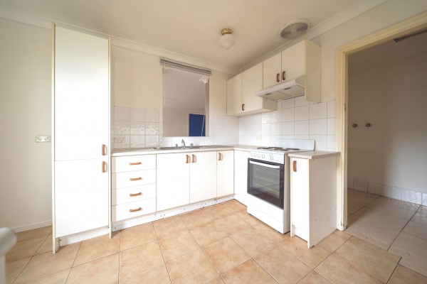 * Neat kitchen with electric cooking & plenty of cupboard space