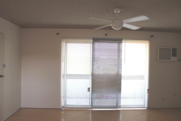 * Wall air conditioner & ceiling fan in living area