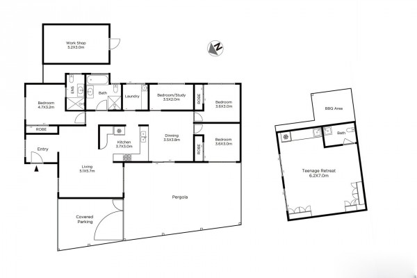 * Detached fully self contained retreat for the teenagers which has a living/bedroom has built in kitchenette (no cooking), 3rd bathroom & built in cabinetry