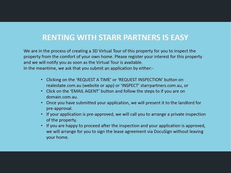 We are currently in the process of creating a high-quality 3D Virtual Tour of this property so that you can inspect the property from the comfort of your own home. Register your interest in this property and we will notify you when the Virtual Tour is ready for you to view.