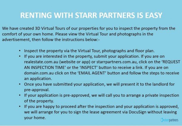 We have high quality 3D Virtual Tours, photos, and floor plans to enable you to inspect & lease properties online.