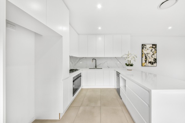+ Modern kitchen with stone benches, gas cook-top and a dishwasher
