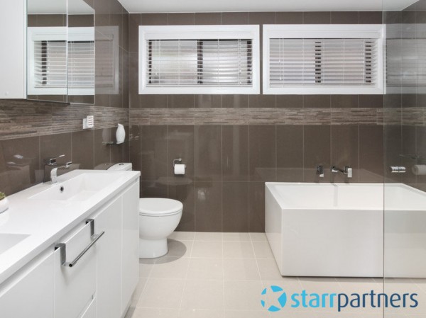 * Modern bathroom with a double shower, bath, vanity & combined toilet