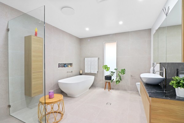 - Massive renovated main bathroom with floor to ceiling tiles, shower, toilet & freestanding stone bath