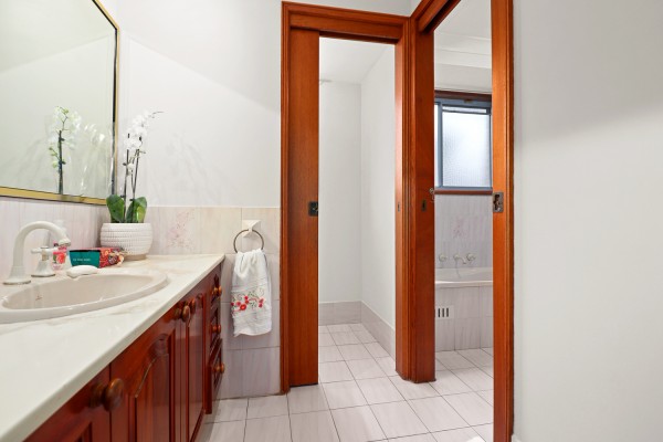 The Bathroom: 2 bathrooms in total, one well kept 3 way bathroom inside and the other bathroom in the laundry.