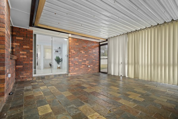 - Undercover entertainment area with large sized shed tucked away in corner of the backyard