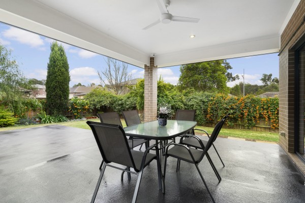 - Incredible outdoor entertaining area, showcasing a large alfresco complete with a ceiling fan, overlooking the well-manicured gardens, plenty of grassy yard space and a hidden garden shed for additional storage