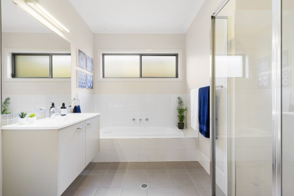 - Spacious main bathroom with a built-in bathtub and the benefits of instantaneous gas hot water