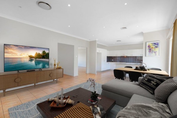 This spacious home, situated on a high position, is ideal for a large family. It features an open plan lounge and dining area with high ceilings and ample sunlight. The home is equipped with ducted air conditioning throughout.