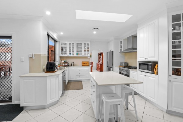 - Large quality renovated kitchen including a 900mm stainless steel 6 burner gas/oven, dishwasher, island bench space, lots of cupboard space and a large skylight to middle of kitchen