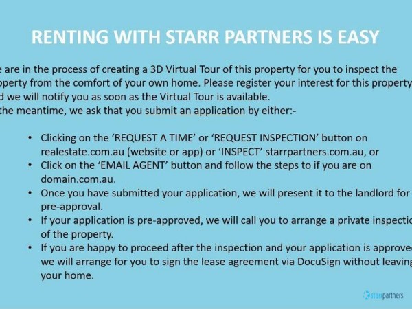 We are currently in the process of creating a high-quality 3D Virtual Tour of this property so that you can inspect the property from the comfort of your own home. Register your interest in this property and we will notify you when the Virtual Tour is ready for you to view.