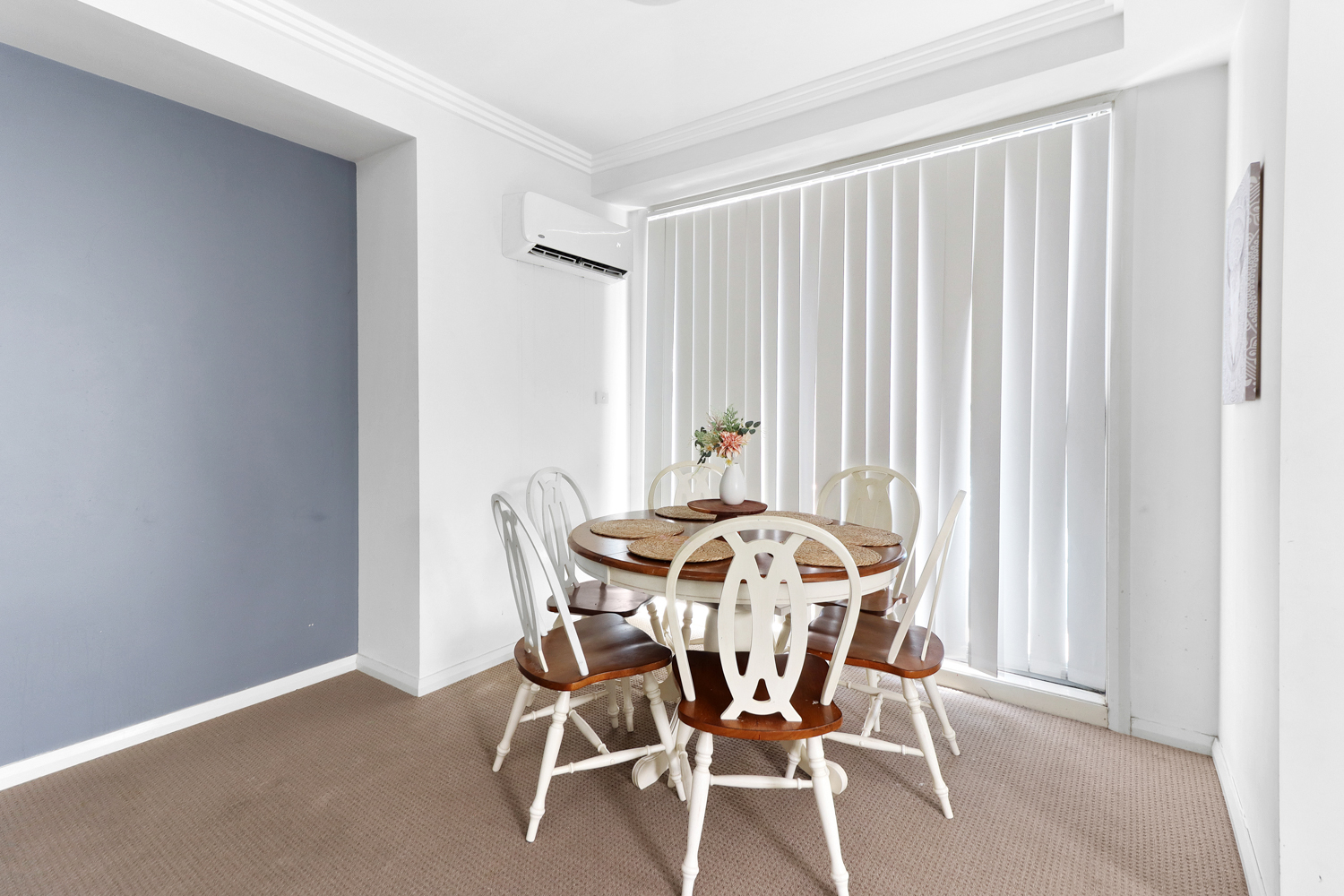 - Large open plan carpeted living/dining area off kitchen, with split system air-conditioning