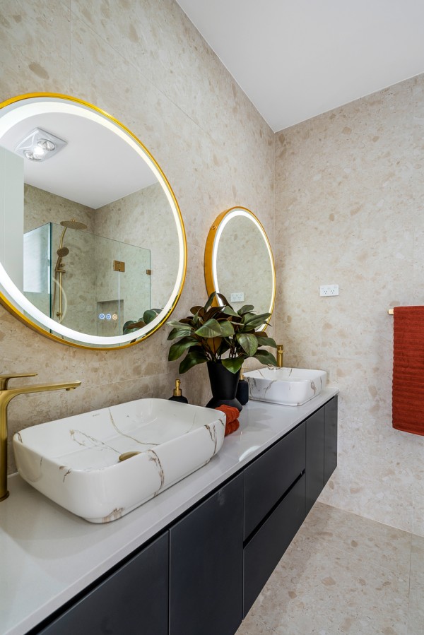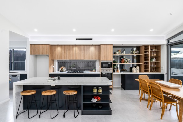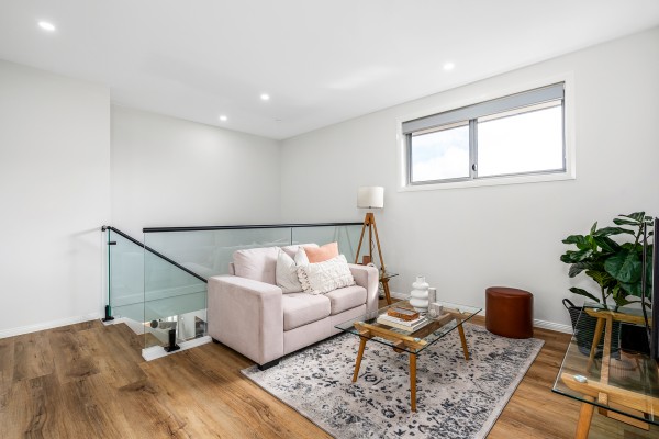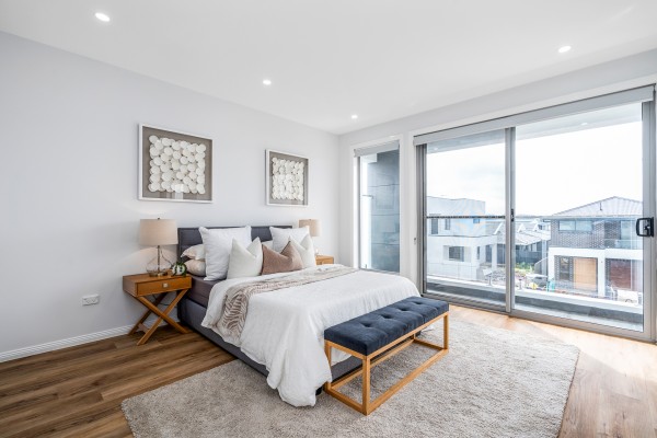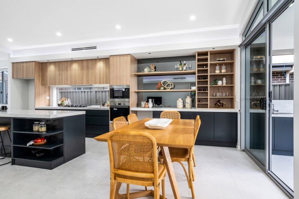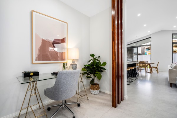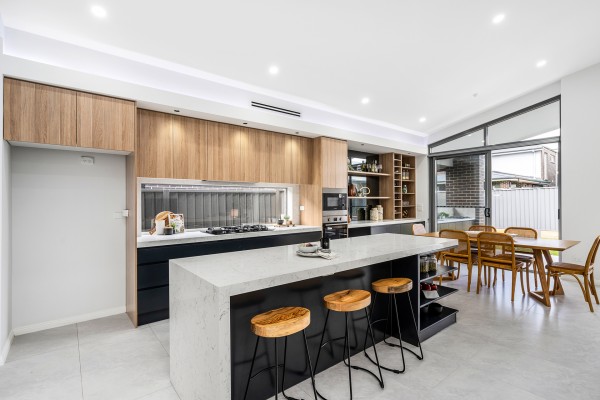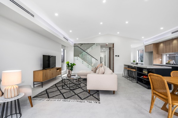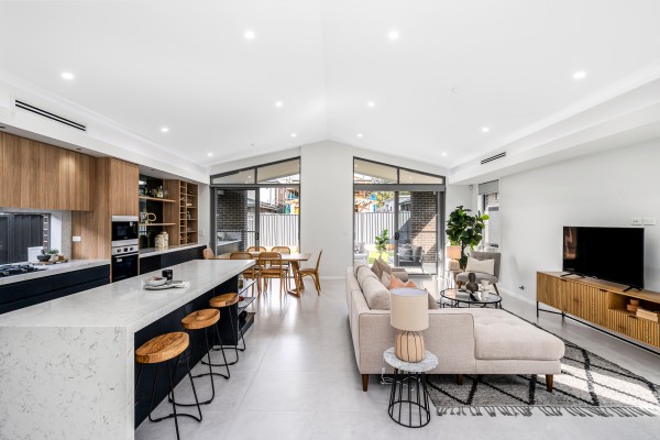 Customised joinery highlights superior quality, enriched by breathtaking finishing touches, and contemporary design offers a high ceiling filled with natural light. Simply unmatched, the living and dining areas with a customer bar and sliding door for an alfresco kitchen have been designed to entertain the seamless, integrated indoor and outdoor space.