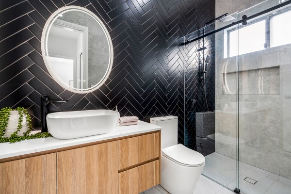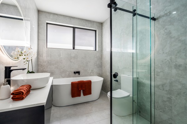 • 5 bedrooms, 3 bathrooms, all with floor-to-ceiling tiles