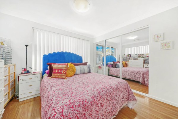 The bedrooms are generously sized and offer ample storage with an oversized walk-in robe in the master bedroom and a walk-in robe to second bedroom. Downlights illuminate the living spaces, creating a warm and inviting ambiance.
