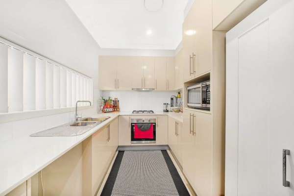 Convenience is key, with internal access to garage, providing peace of mind and easy parking and an additional undercover car space. The modern poly kitchen is a chef's delight, featuring white stone tops and gas cooking facilities.