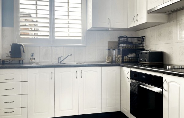 - 2 Spacious bedrooms with plantation shutters and mirrored built-ins