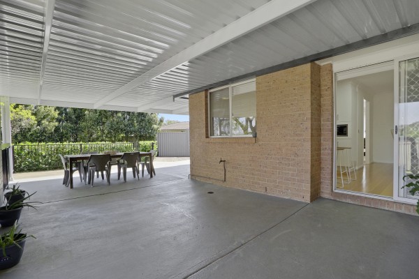 - Large undercover L shaped entertainment area with gas bayonets for the BBQ