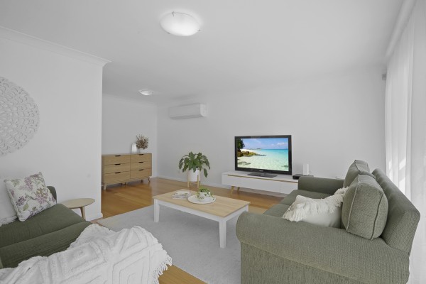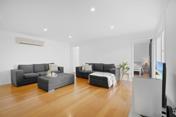 - Large living room with bar area, day/night blinds, downlights and split system air-conditioning throughout with linen/storage to hallway and access to yard