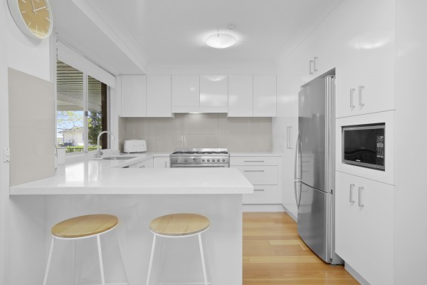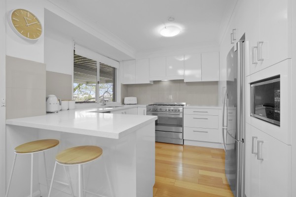 - Renovated kitchen with caesarstone bench tops, 6 burner Smeg gas cook top and electric oven, breakfast bar and a stainless steel dishwasher