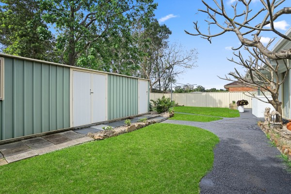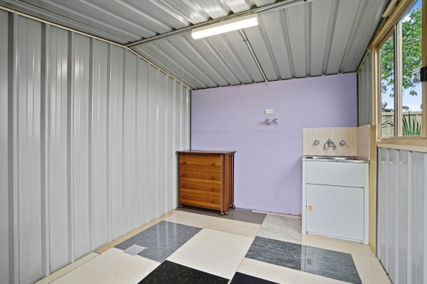 - Large grassed yard with landscaped garden beds, garden shed/workshop with bench/cupboard space, power and lights connected