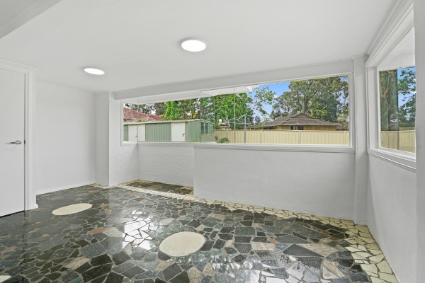 - Enclosed sunroom with mosaic tiles throughout, split system air-conditioner, second bathroom with shower and access to double lock up garage