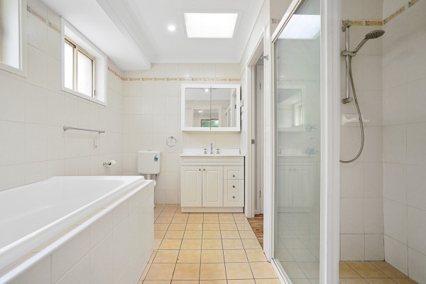 - Well appointed main bathroom with large shower, spa bathtub and floor to ceiling tiles