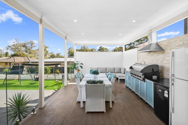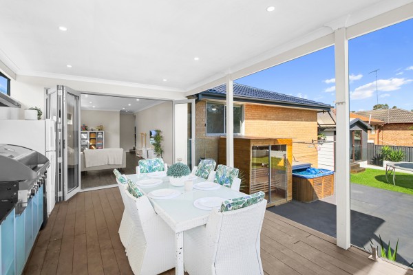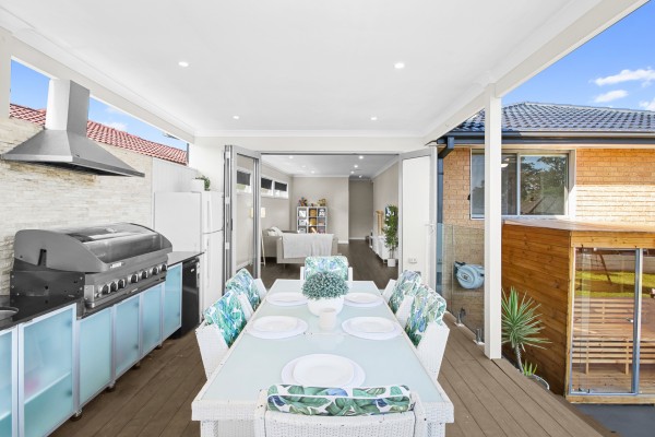 - Large family room to back of the home with bi-fold doors leading to the undercover entertainment area with timber decking, downlights, fixed BBQ area with an outdoor sink and extra bench space