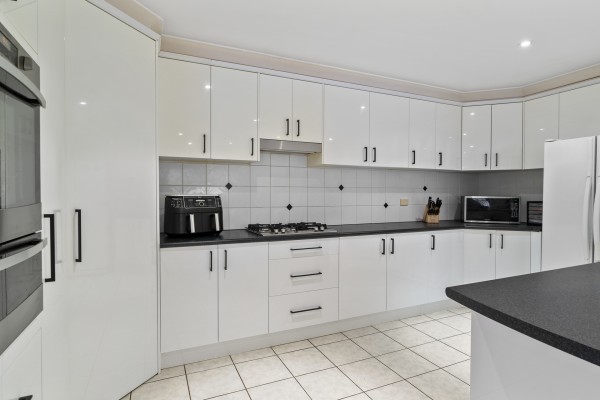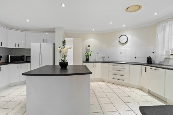 * Large open-plan kitchen with modern finishes and ample storage