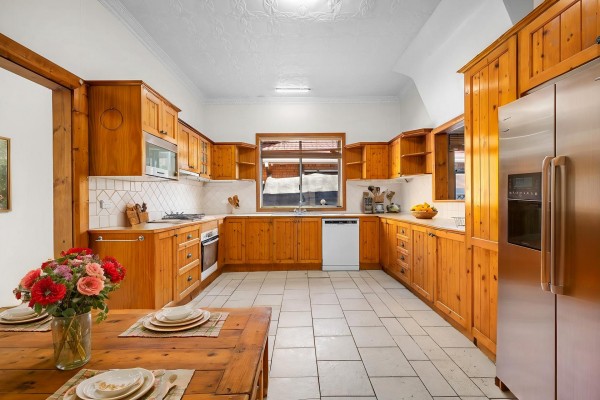 * Neat timber kitchen with gas cooking