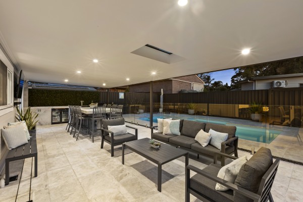 - Covered alfresco area with bar fridge, BBQ and kegerator overlooking private pool