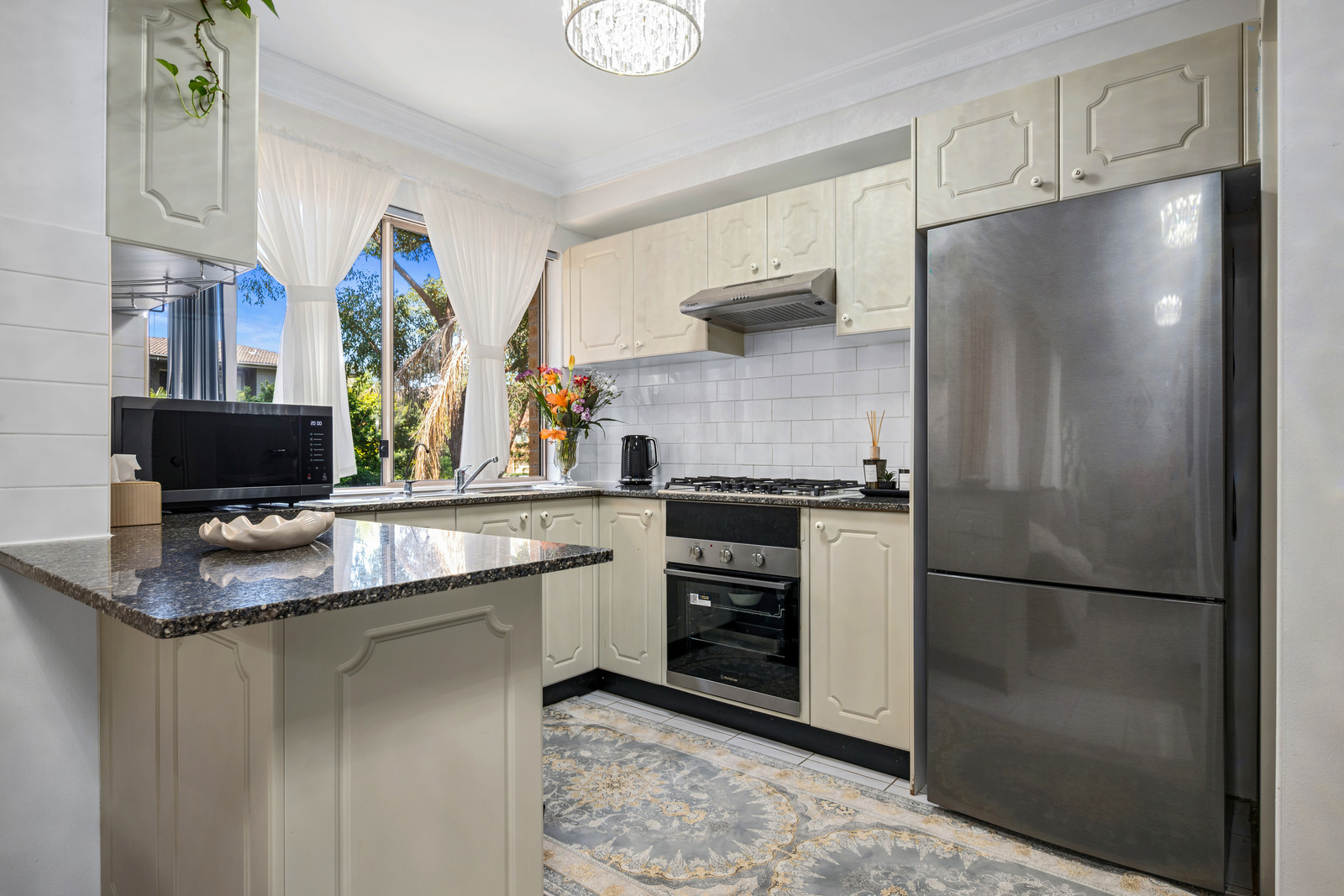 * Modern kitchen with stone benchtops