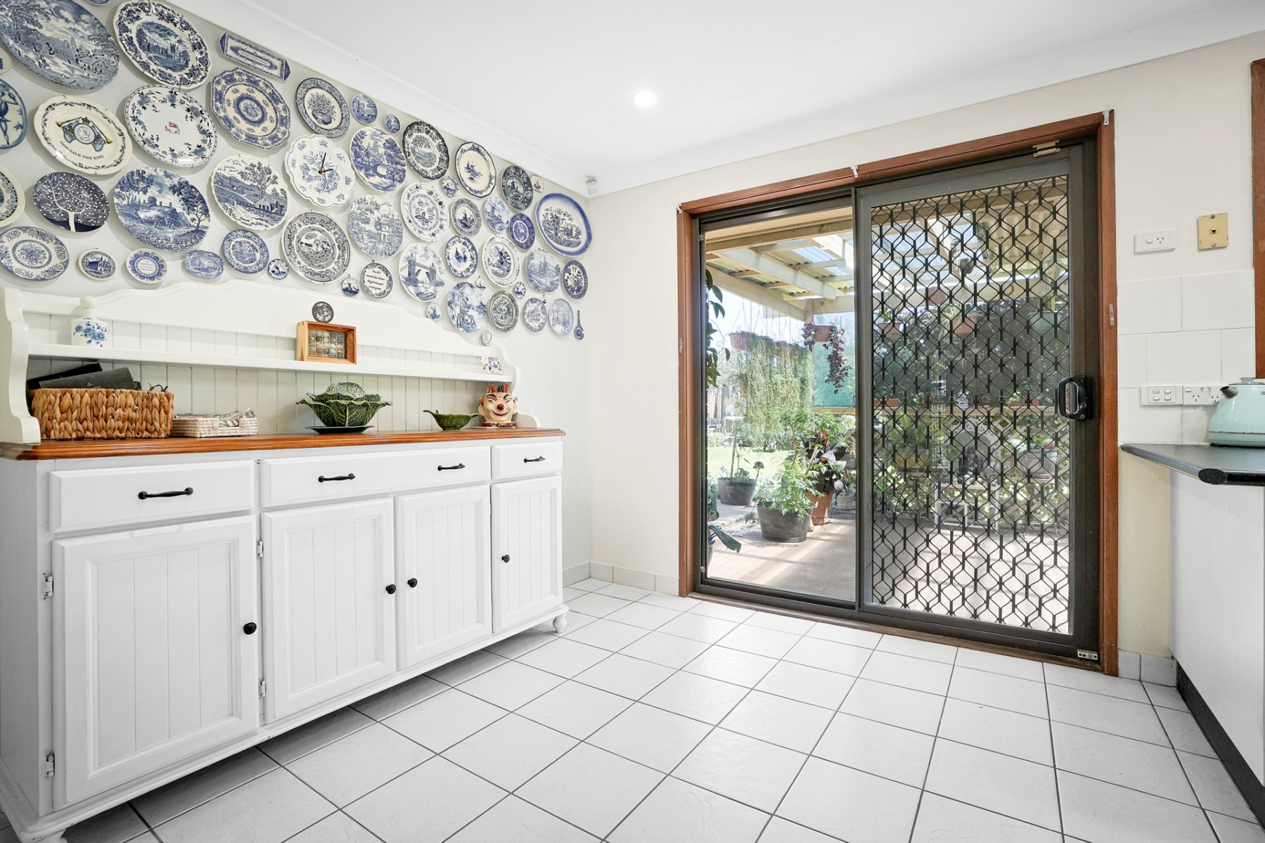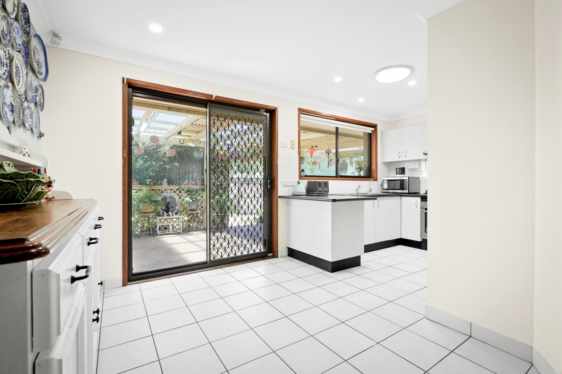 - Dining off kitchen tiled throughout with glass sliding doors to backyard