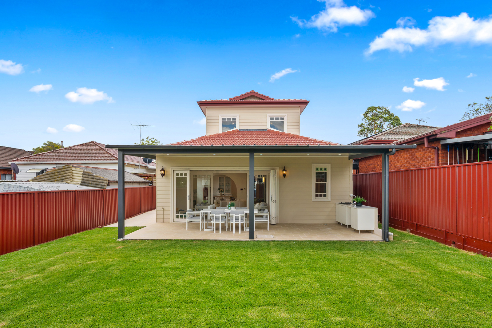 * Family sized pergola creates a perfect setting for entertaining