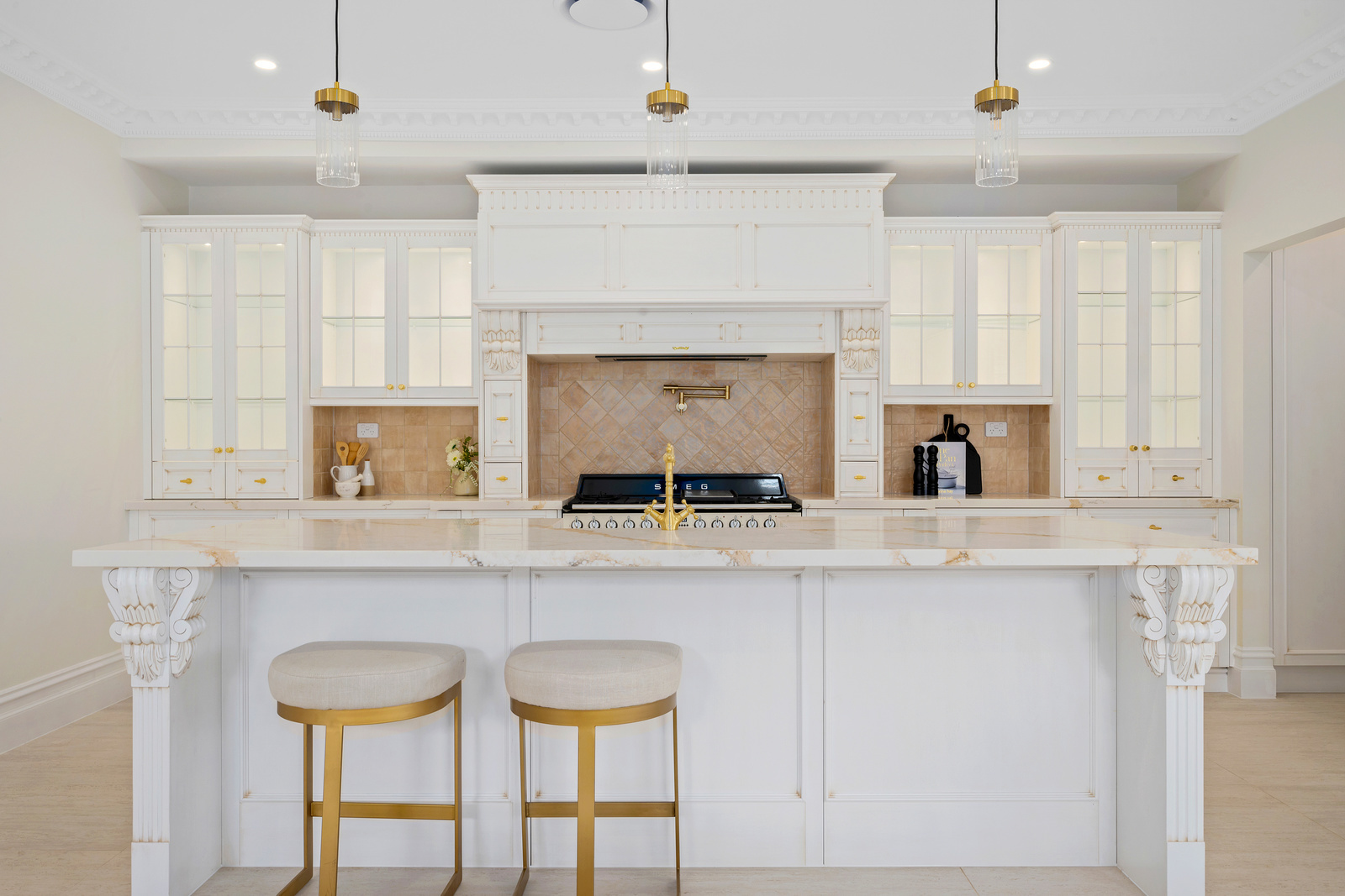 Completed with high quality fixtures and finishes throughout - including high ornate ceilings, full patterned cornices, timber floors, fireplaces and refined timber detailing, period features throughout and all the extras that create and a real feeling of classic and luxurious living.