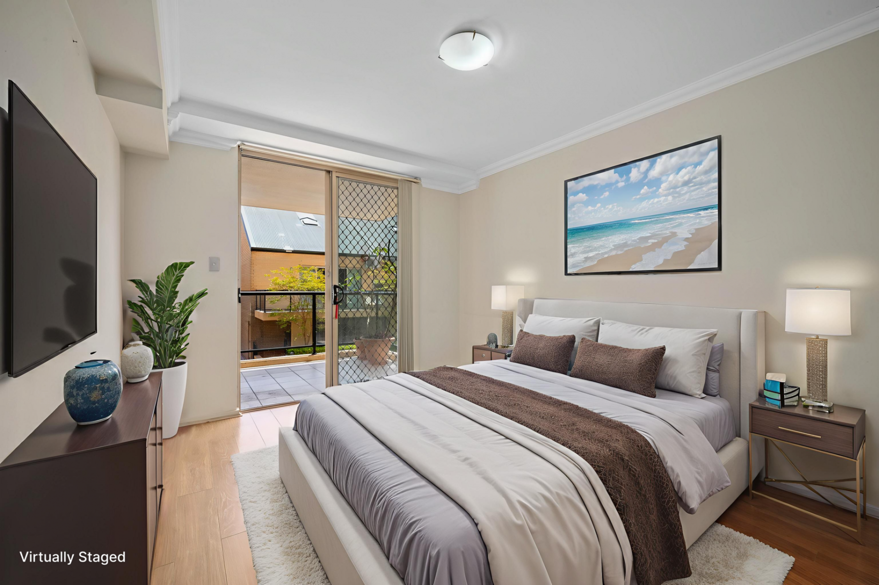 * Two bedrooms with balcony access