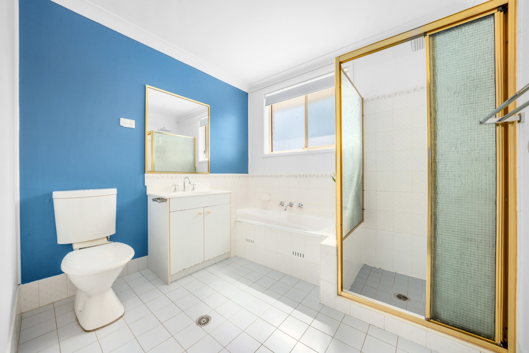 - Large bathroom with bath and shower