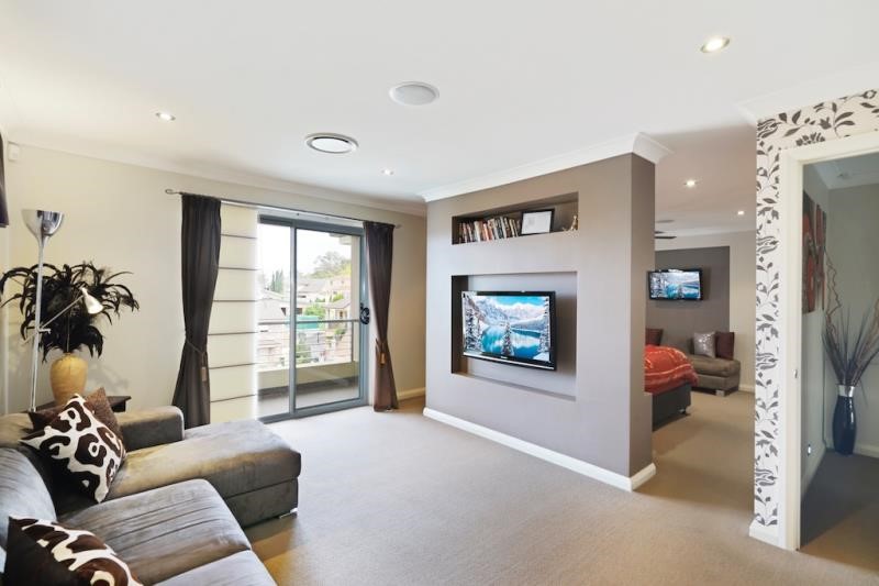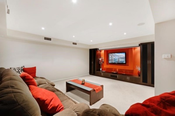 - Massive theatre room with feature walls, down lights and storage