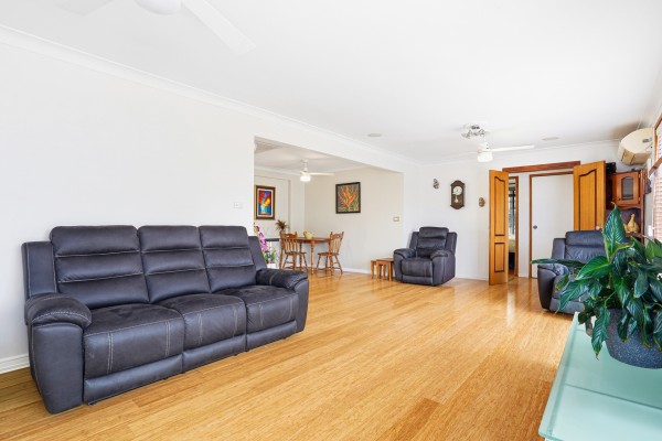 - Light-filled open living area enhanced by two ceiling fans, creating a bright and comfortable space for everyday living
