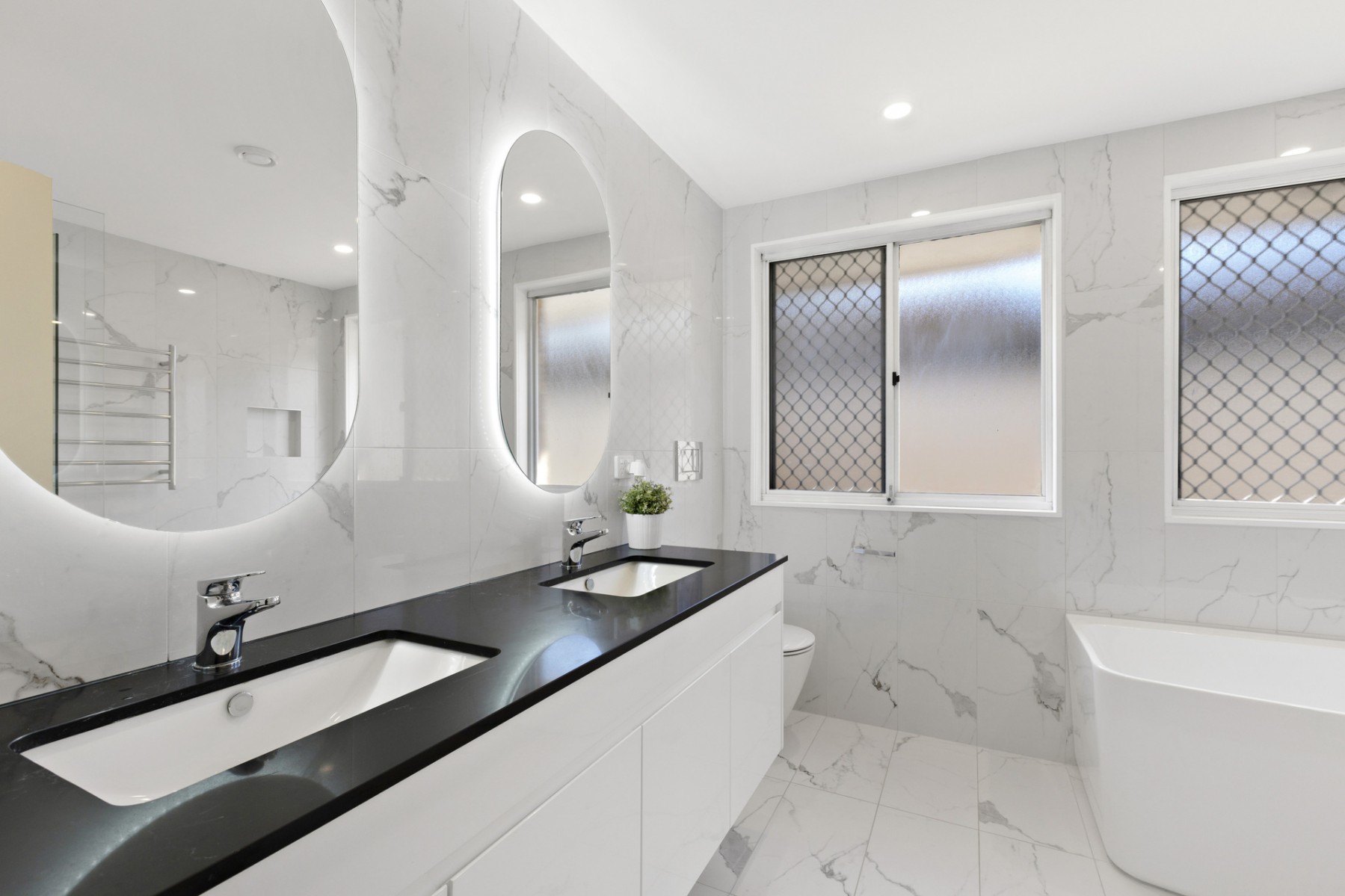 * Near new bathroom with double sink and heated flooring
