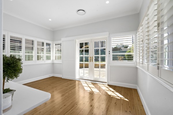 * Rear living room with french doors leading to rear terrace