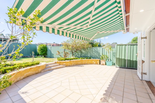 * Paved area to rear with retractable awning